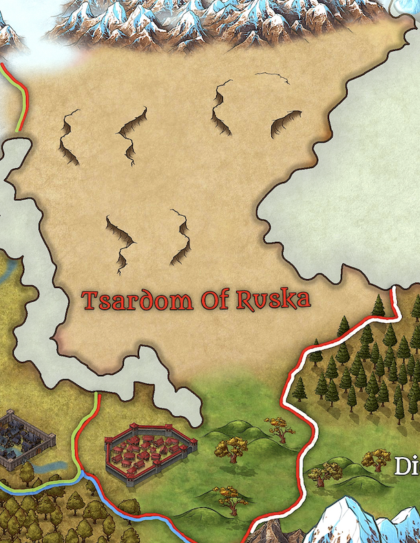 Ancient holdings of the fierce and bold tundra folk who reside in Ruska. Ruled by the iron-willed Tsar Vladislav with the aide of the eccentric mage and nobleman Theodric Vonner.
