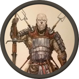 Hailed as one of the greatest bounty hunters of the fourth age, Crom was raised in the lowly streets of Zubar until he was pushed out by the Mad Eyes crime syndicate and forced to leave his family. After many years of independent hunting for food, Crom turned to bounty hunting and found his life's calling. Tasked with tracking down and capturing the party, Crom had several run-ins with the fugitive party over the course of the campaign. In a final heated duel on the streets of Linhaven, Crom was killed and dispatched by Boomer after denying him as his father.