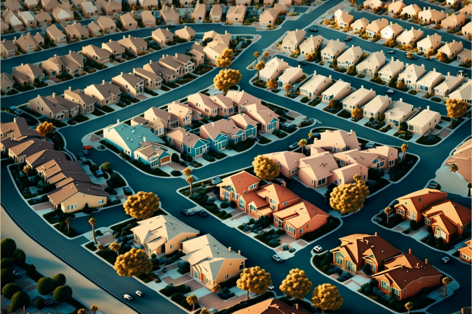 The Green Hills housing development is southeast of the Town Square, and the newest part of town. It’s block after block of virtually identical houses laid out in a perfect grid.