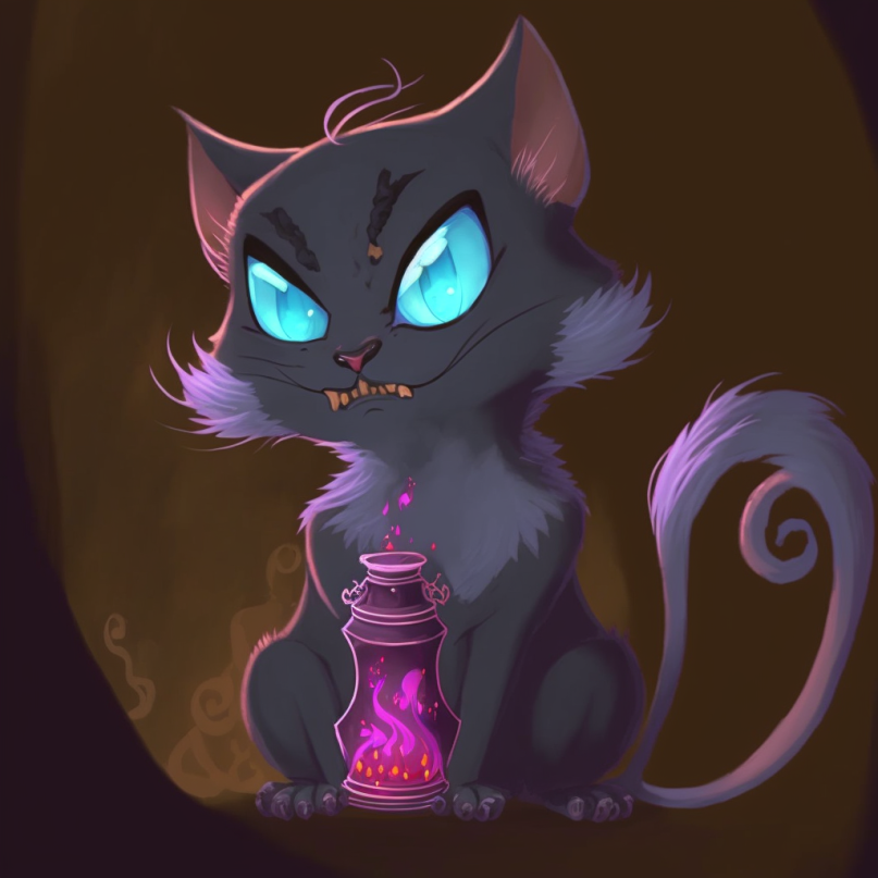 The players' kitties aren't the only ones with Magical Powers. Usually magical kitties help each other, but sometimes they conflict when the needs of their humans are at odds. This magical kitty's human is a witch up to no good, but the loyal kitty is determined to help anyway.