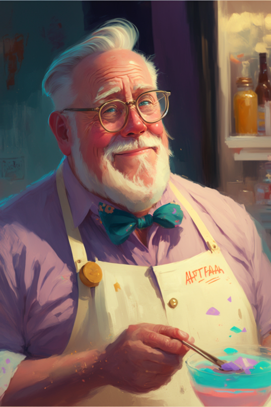 Godfrey has been making candy for over fifty years, and he's known for his creative (and delicious) candy creations. He is always dreaming up something new both for tasty flavors and beautiful candy-based displays for his shop, Macavity's Sweet Shop.