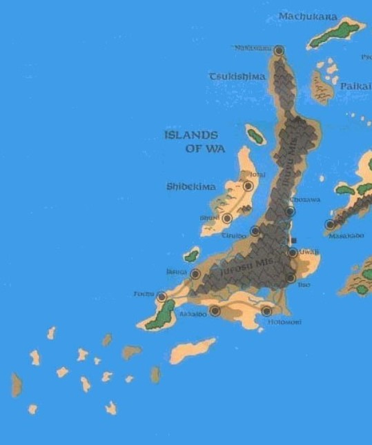 Wa é uma nação insular em Kara-Tur que mantém um controle rígido sobre as viagens para dentro e fora do país. Contagem de palavras: 21