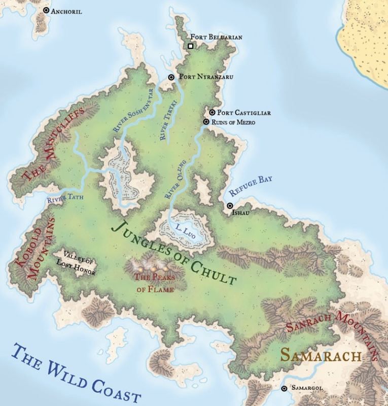 Chult é uma selva montanhosa de feras selvagens, dinossauros desajeitados e pântanos infestados de doenças. Word count: 15