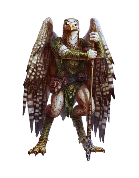 Birdfolk possessed keen eyesight that allowed them to spot details at great distance, but what really set them apart fom other smallfolk was their talons and their power of flight. Sufficiently strong or magical birdfolk could flap their wings powerfully enough to create great gusts of wind, though to call such magic often required connection to the Plane of Air. Their light frames and wings defined their every advantage, though they relied heavily on open skies to make full use of them. On the ground, however, they moved slightly awkwardly compared to most creatures of similar size.