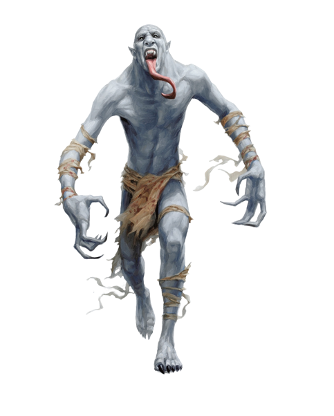 Ghasts were a more powerful subtype of Ghoul, once-humanoids transformed by dark rituals or cursed by malevolent spirits. Twisted by decay and corruption, they were far more cunning than ghouls, and had possessed paralytic claws and long tuns. Ghasts sought to ambush unwary victims wherever they could, often while leading packs of Ghouls themselves, and would paralyze their prey with a claw wound before devouring them. Ghasts had a significantly stronger stench of death and rot than ghouls, emanating terrible enough to cause nausea, retching, and even paralysis.