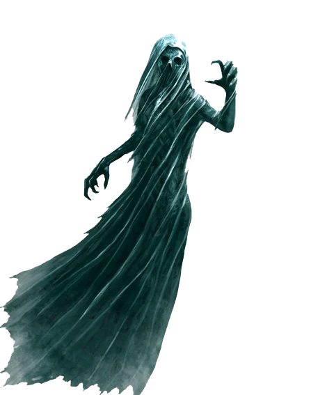 Specters were the angry, unfettered spirits of humanoids prevented from passing to the afterlife. They manifested as Ghostly, translucent figures, often resembling their mortal forms but twisted by death and despair. Their bodies flickered and wavered like smoke, and their eyes glowed with an eerie, otherworldly light. Their hands were often claw-like, reaching out to touch and drain the life from their victims; however, they were weak to sunlight, so could only lurk in the shadows or in the dead of night.