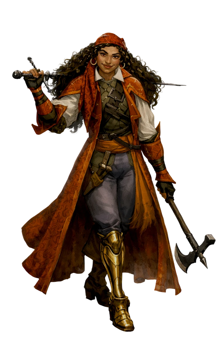 For two further years, Ez made a name for herself as a powerful solo Adventurer, developing skills as a Fighter. She acquired a magical Vardo, numerous Enhanced weapons and armor, and a sizable personal fortune; however, the life of a young adventurer was not an easy one. Ezmerelda ended up losing her leg while defending a Gnome commune in Phalor-Phaeun, fighting off a Worg of unusual size as well as a band of Goblins. The gnomes had their Artificers create a Prosthetic Limb for her, but the experience was harrowing and painful.