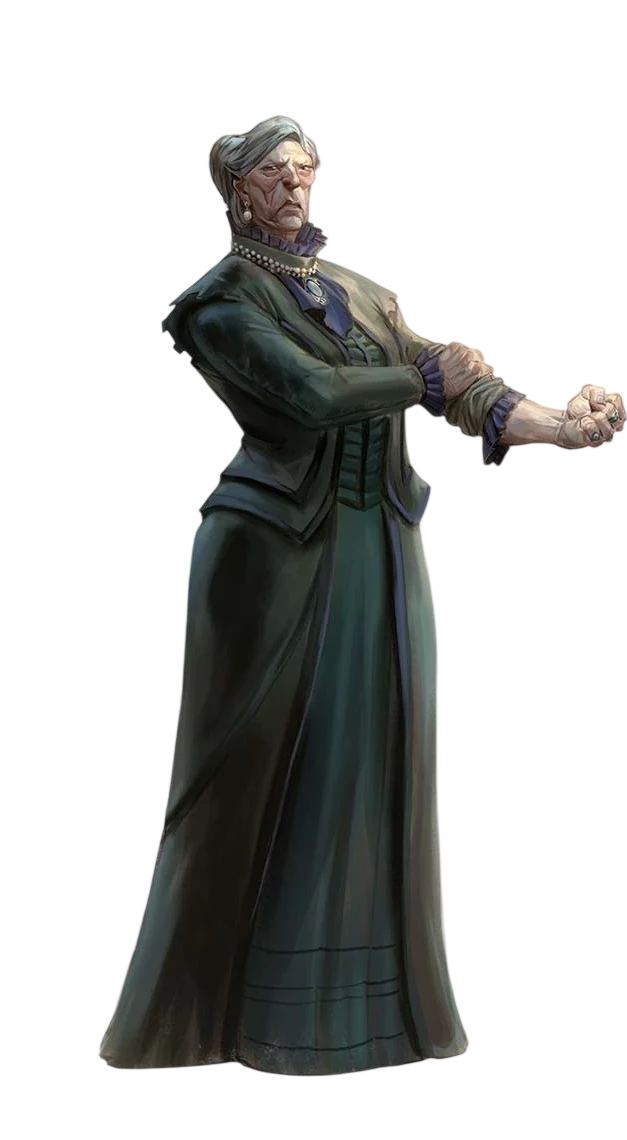 The headmistress got help from the Pack in Curse Of Strahd, informing them of the strange happenings occurring since the arrival of Felix Zsoldos and eventually notifying them of his mysterious locket. They used this to slay the Shadow Demon that had taken hold of the boy, and the Headmistress was ashamed she had not been able to see it. She later learned from them that the ordeal was part of a greater conspiracy to deconsecrate the church, but through the heroes' actions, this disaster was averted.
