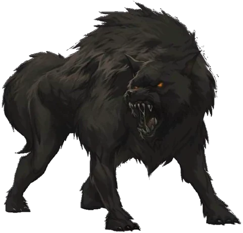 A ferocious Dire Wolf born in the Forest of Stone Tooth, Vak was captured as a young pup and separated from his mother by a band of Orcs. The orcs killed the dire wolf pack and brought him to their base in the Stone Tooth. There, he was raised with his brother Thrag under the "care" of the Ogre chieftain Great Ulfa. They were starved and beaten regularly, and were trained to be hyper-aggressive towards intruders. Spending most of their lives in Khundrukar, they were taught to not leave the orc's abode, and to avoid Stirges at all costs.