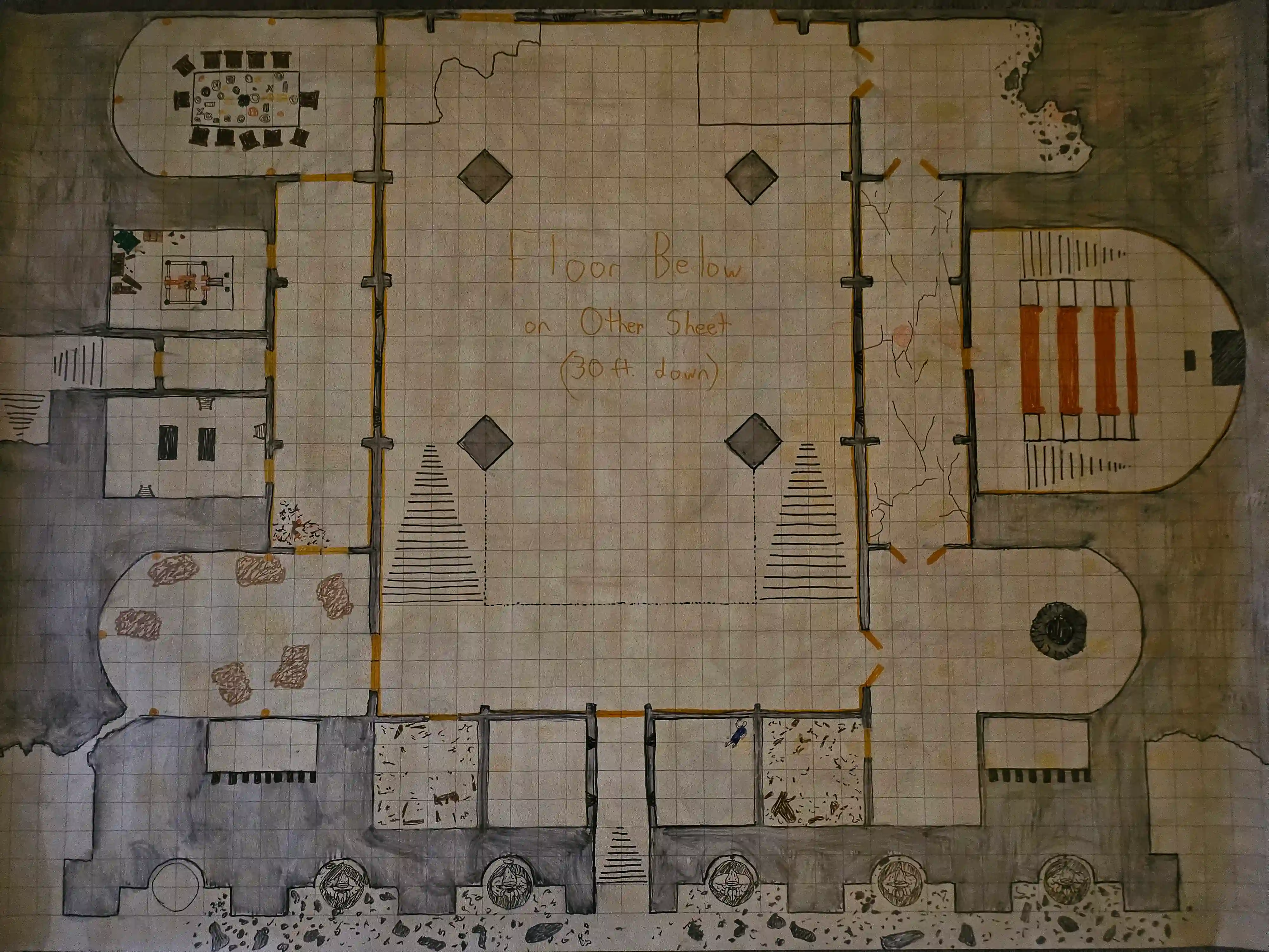 The temple was focused around a main chamber, marked by a massive granite statue representing the God of Secrets. Sheets of amber lined the main hall and hallways, and most of its chambers were carved from black stone and lined with statues. Hidden doors and long hallways connected the vaults containing the sarcophagi, scholarly lecterns, wizards chambers, and a great library that contained many arcane secrets, covered in illusory magic known only to members of the Paragon.