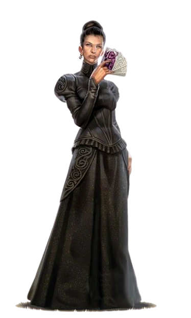 Strahd paid Tasha vast sums of money to work for him as an assassin, taking down many of his political enemies in the dead of night while healing their kin as a woman of the cloth. She kept up this act for years, becoming the greatest hired killer in Barovia; meanwhile, she presented as a pious medicine-woman. This lie was not detected by her peer, until Saint Markovia was slain at Castle Ravenloft and Zachodgrad was sieged. Before the fort fell, Tasha fled to Vallaki with an absolute abundance of Strahd's wealth. Once established in Vallaki, she had a family, attempting to leave her old life behind her in a new world dominated by mists and darkness.