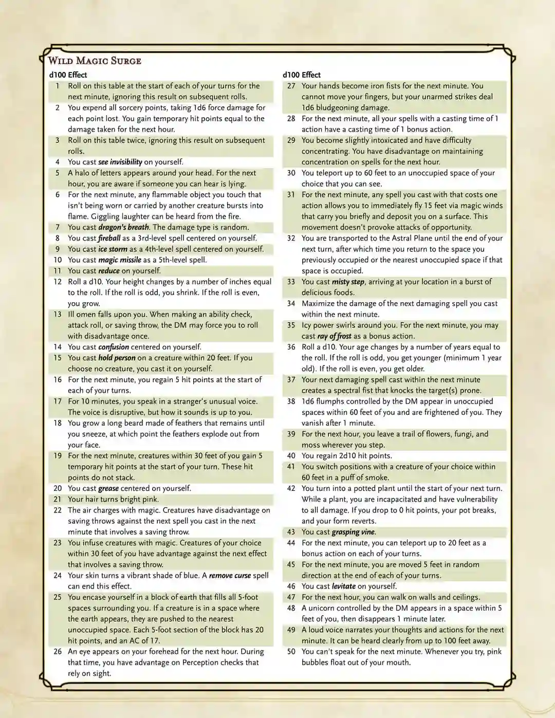 Not all wild magic was limited to a specific area; at times, it could be carried via winds or waters, resulting in tempests of destructive energy called "Magic Storms". Often containing the entropic power of Negative Energy and Positive Energy, or chaotically linked to the Elemental Realms, the effects of these storms were completely unpredictable. At times, such surges were harmless, changing the colour of the clouds or rapidly creating plant life. However, they were usually extremely dangerous, with effects ranging from stopping time, summoning monsters, raining weapons, or enervating the souls of any living creature inside the storm.