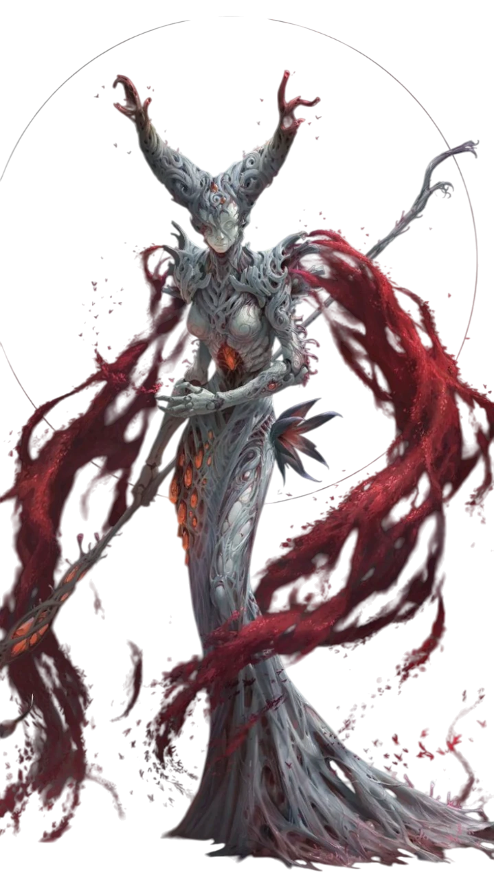 Ipniani relied on Fekre's abilities to overwhelm Barovia's horrors with magical contagion and rot, and near-fully allowed Fekre control of her body. Despite strong will, the Ipniani ended up trapped alone in the Amber Temple, with her party dead and only a Quasit Familiar to keep her company. Fekre allowed her Paladin to hide in the lecture hall, waiting for a change in the temple guardian Neferon's attention to make a break to release her. Before this could happen, however, Ipniani was encountered by the Heralds of Dawn.