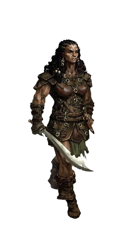In Curse Of Strahd, Helwa's tribe took in a wandering Izek Strazni at the request of the elders. Though Helwa did not respect the outsider, she could not deny that he was a match for her in terms of strength, and placed him in charge of taking care of young hunters; his ability to speak the Common tongue also allowed him to communicate with adventurers and everyday Barovians.