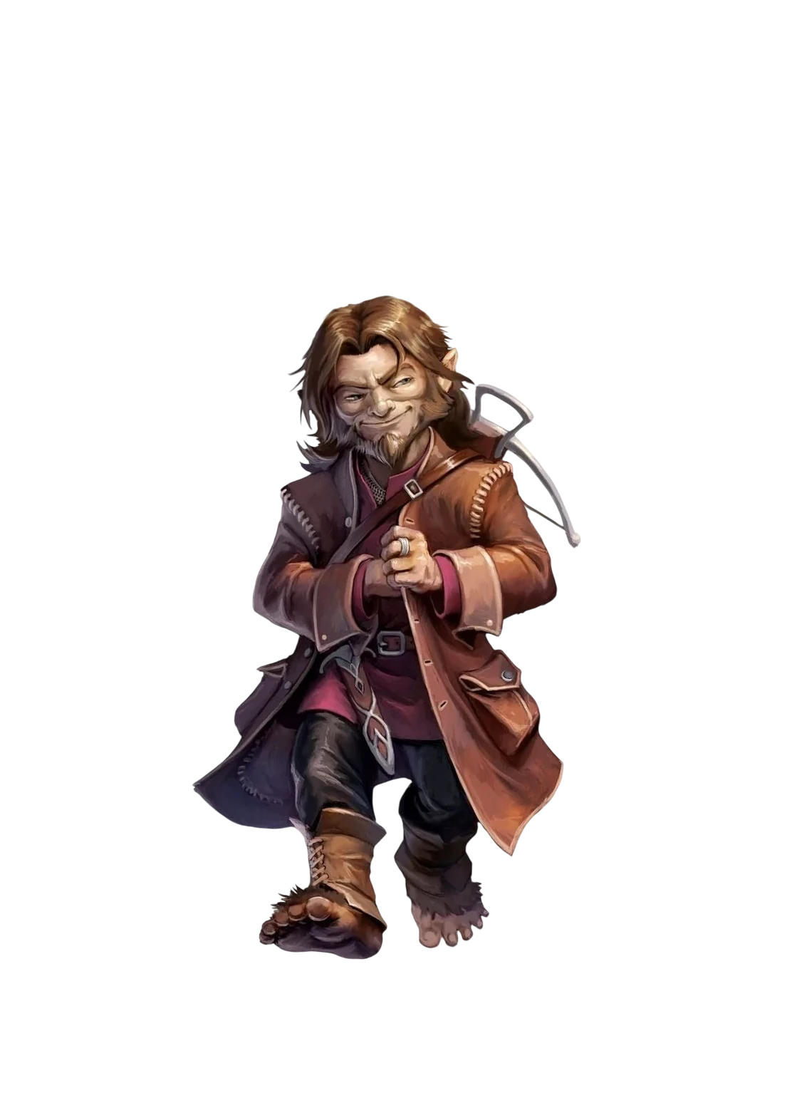Merben Ordri Tripfoot Fizzlehide Pennyluck was a Gnome-Halfling Crossborn born in Cliffsunder. Growing up in the shadow of his Nessa Nina Quickpick Rumbauld Pennyluck's reputation as a master thief, he idolized his grandmother; his own mother passed away when he was young on a heist gone wrong, and his halfling father disappeared after. As a crossborn, he often did not fit amongst the groups he was born into, and tended to act out rashly. Though Nessa Nina had long since retired from her thieving days by his birth, the tales of her trickery and gamesmanship still carried through the alleys and taverns, and always reached Merben's ears.