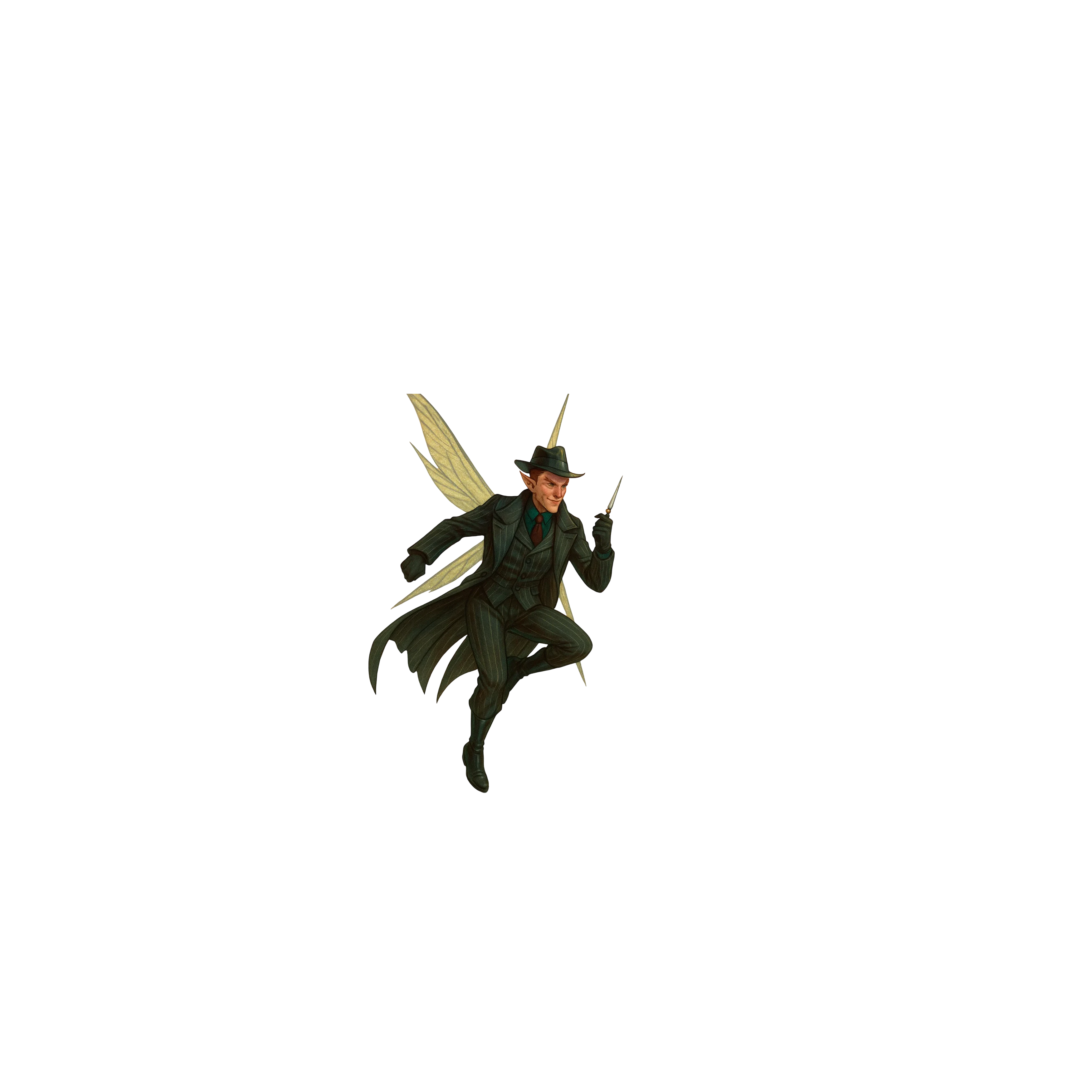 What started as petty theft grew into organized crime. Coriander’s crew bribed guards, demanded protection fees from merchants, and made deals with nobles who wanted quiet problems solved. Over time, the criminal racket became known as the Glitterati, an organization with influence across all of the Fencrest Foothills, and Don Coriander was its infamous leader. Through reputation alone, he adopted powerful allies into his fold such as the Giantborn fairy Snapdragon Poplarchop, and established the Pixis Palace as one of Cliffsunder's most famous crime dens.