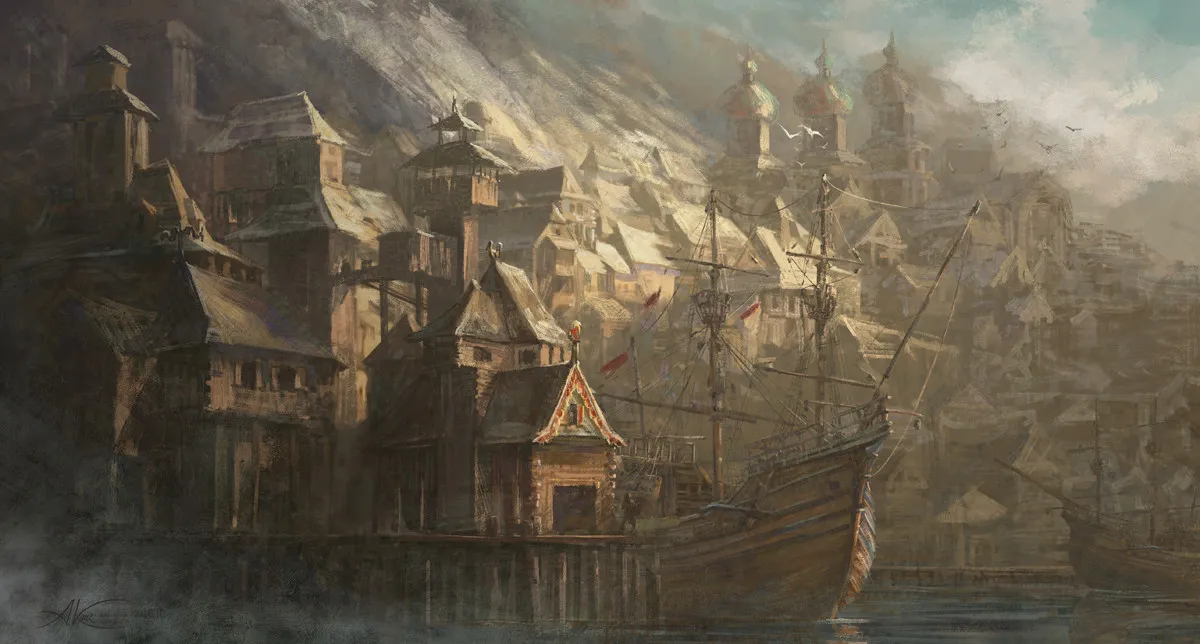 Like its sister cities Ubrahimmar and Nethulinmar, Farrozandmar had a majority-Human population, with other Mortalkind often sticking out in crowds. Despite facing the open Shifting Blue, Farrozandmar benefited from a natural shield of jagged rock spires that broke incoming waves and wind before they reached the harbor. These formations made the approach narrow but navigable, and sailors learned to trust the town as a relatively safe anchorage on otherwise dangerous journeys. As a result, Farrozandmar became a routine stopping point for merchant crews, patrol vessels, and independent sailors crossing the Gulf of the Maw.