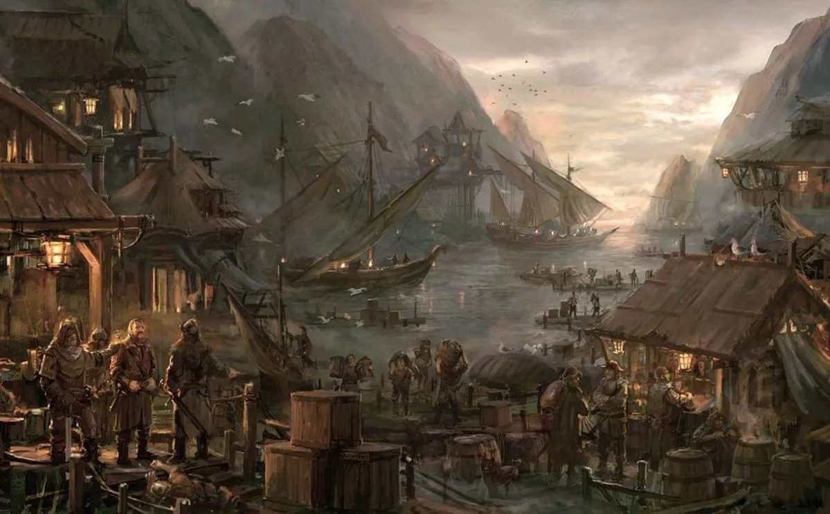 The Far Sands Market was the commercial heart of Farrozandmar, sprawling across the lowest terraces near the docks where stone met water. Its name was widely believed to have originated as a sailor’s bastardization of "Farro", "Zand," and "Mar", gradually formalized through repetition rather than intent. The market dealt primarily in fish hauled from the Gulf of the Maw, sold fresh, dried, or heavily salted for transport. Stalls were temporary and uneven, constructed from scrap wood, sailcloth, and salvaged planks, and they shifted positions frequently as tides, collapses, and disputes forced merchants to relocate.