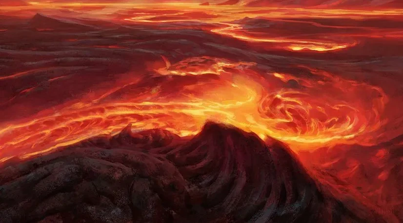 Conditions in the Plane of Magma were harsh and unforgiving. Heat was constant and oppressive, and the air was filled with ash, sulfurous fumes, and superheated gasses that were difficult or impossible to breathe. Basalt islands formed only briefly before being pulled under by magma currents, while eruptions and magma fountains regularly reshaped the terrain. Veins of metal and rare minerals were common, drawn from the Realm of Earth, but accessing them was extremely dangerous, as the plane remained in near-constant motion and resisted lasting stability.