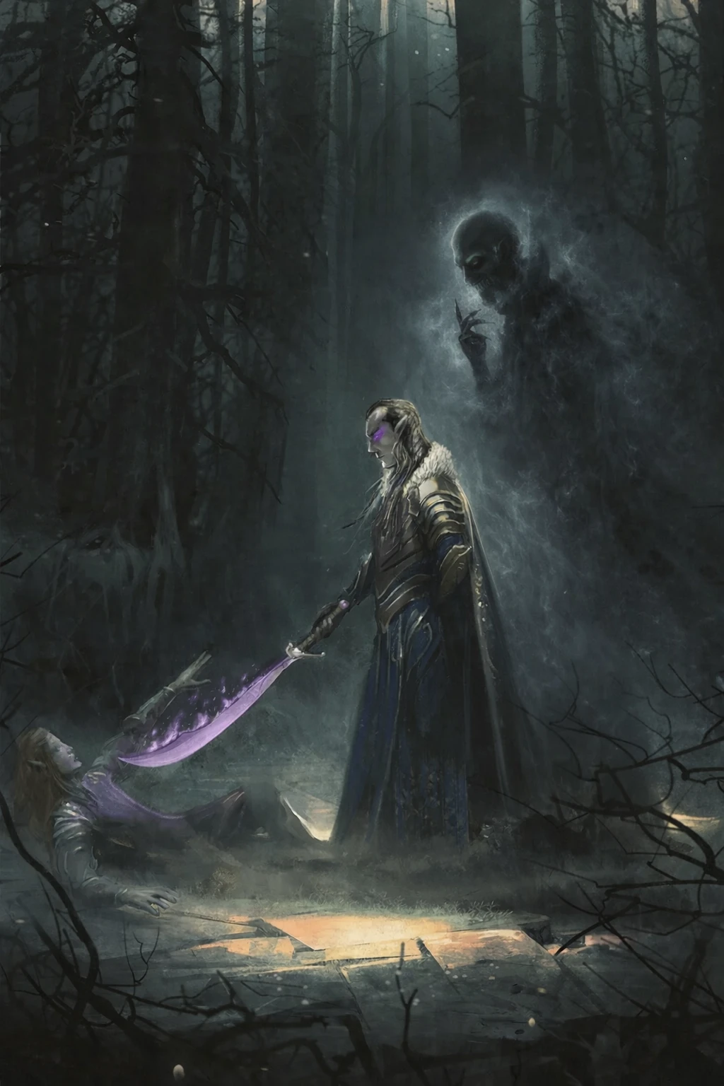 The defeat of the "Dusk" Elf tribe of the Zarovich Valley followed the betrayal of their own blood, and the closing grip of the von Zarovich conquest. Diminished by the murder of their elder council when Rahadin betrayed the elves and punished them for his exile, the elves were pressed into surrender by Strahd von Zarovich's armies. They were forbidden from returning to their sanctuaries in the Svalich Woods and stripped of alliances beyond the valley. By Strahd’s decree, the survivors were gathered and relocated to the Vistani Camp west of Vallaki, placed under Vistani watch as wards and prisoners alike. What remained of the tribe endured in exile, cut off from their lands, customs, and names.