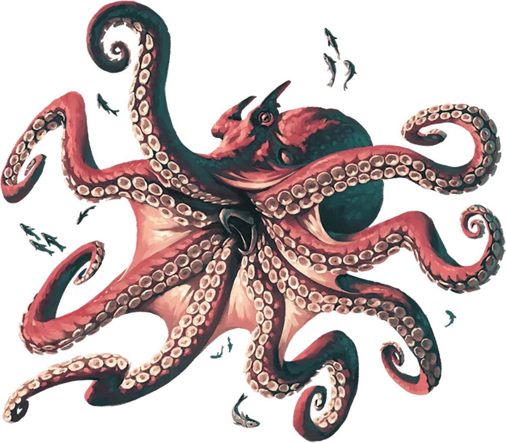 Giant octopuses were massive cephalopods that dwelled in deep coastal waters, sea caves, and lightless trenches. They were patient ambush predators, relying on camouflage and sudden violence to attack smaller Beasts rather than pursuing their prey directly. Their soft bodies allowed them to squeeze through narrow crevices, using the suckers on their tentacles to move with patience, while their mottled skin shifted color and texture to match stone, coral, or sand.