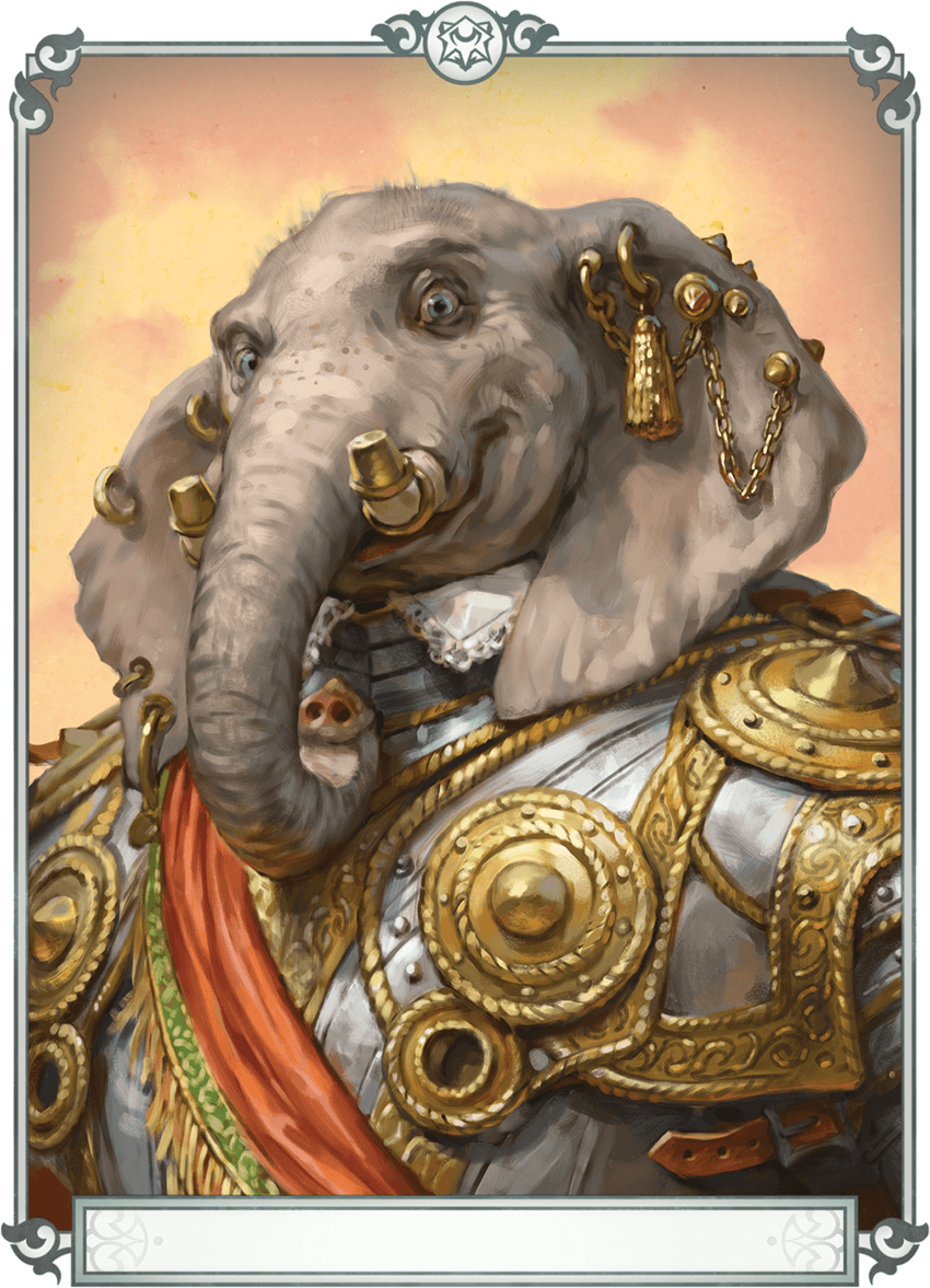 Since their name is difficult to pronounce without a trunk, Bhedum has taken to referring to themself as "Rampart", the closest translation of their name in Common. They are often found poring over ancient texts detailing battles, seeking to better understand the tactical decisions that result in victory and defeat. Rampart is happy to discuss their knowledge with fellow members of the Dragonsguard Historical Society, often doing so late into the night.