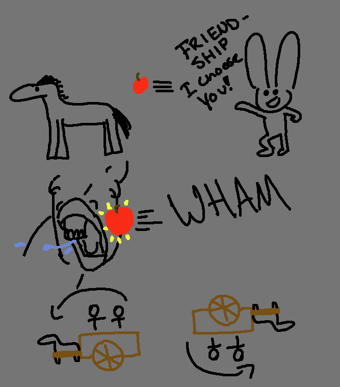 We crept along and found a carriage with three people. We decided not to bother trying to talk and just strike. It was hard fought. I saw Christopher go down, and at one point the cart was overturned as a horse fought against the reigns.