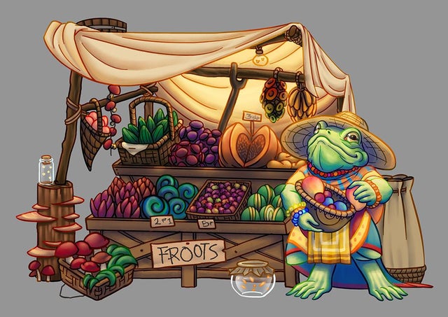 Brenda Rospo is a merchant of Asolo. She usually sells food but will sometimes have fun items that she trades with passing merchants. She usually asks high prices and is very picky about negotiating, preferring a good profit and not worrying about keeping an eclectic item in stock for a bit longer.