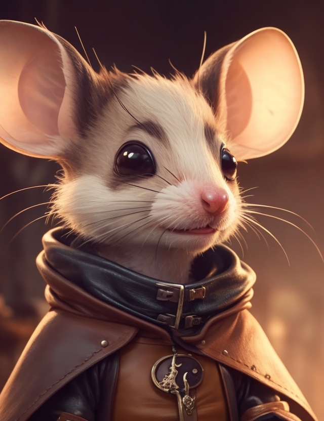 The Mousefolk are diminutive in size, standing at an average height of around 2 to 3 feet tall, with a slender build and delicate features. Their fur coats come in a spectrum of soft colors, from sandy browns to pale grays, often adorned with subtle patterns unique to each individual. Large, expressive eyes gleam with warmth and curiosity, their whiskers twitching as they survey their surroundings. Mousefolk have nimble hands with dexterous fingers, perfect for intricate tasks and crafting.