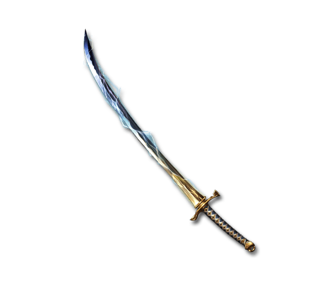 The Kaminari Blade, also known as the "Thunder Blade," is an odachi forged by the master blacksmith Kawasaki Yurumani. During its creation, Yurumani imbued the sword with the spirit of a dying thunder drake, granting it the power of lightning and thunder. The blade is exceptionally long and slightly curved, with a razor-sharp edge that glints with a faint electric blue hue. The hilt is wrapped in storm-grey silk, and the guard is adorned with lightning bolt motifs, adding to its awe-inspiring appearance. Due to the complexity and skill required to create such a weapon, the Kaminari Blade is a rare sight, even among the most prestigious collections.