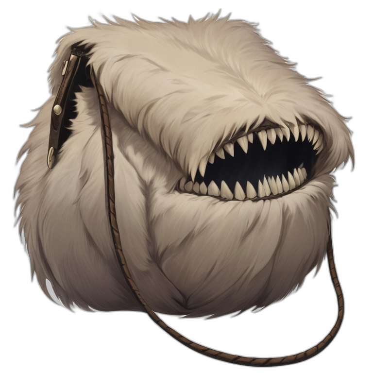 The Furbag of Holding is a peculiar and animated bag, crafted from patches of soft and warm fur. Its deceptively friendly appearance hides a teethed maw that serves as its opening. Despite its odd nature, the Furbag functions similarly to a common Bag of Holding. The interior space of the Furbag is significantly larger than its exterior dimensions, with a mouth roughly 2 feet in diameter and a depth of 4 feet.