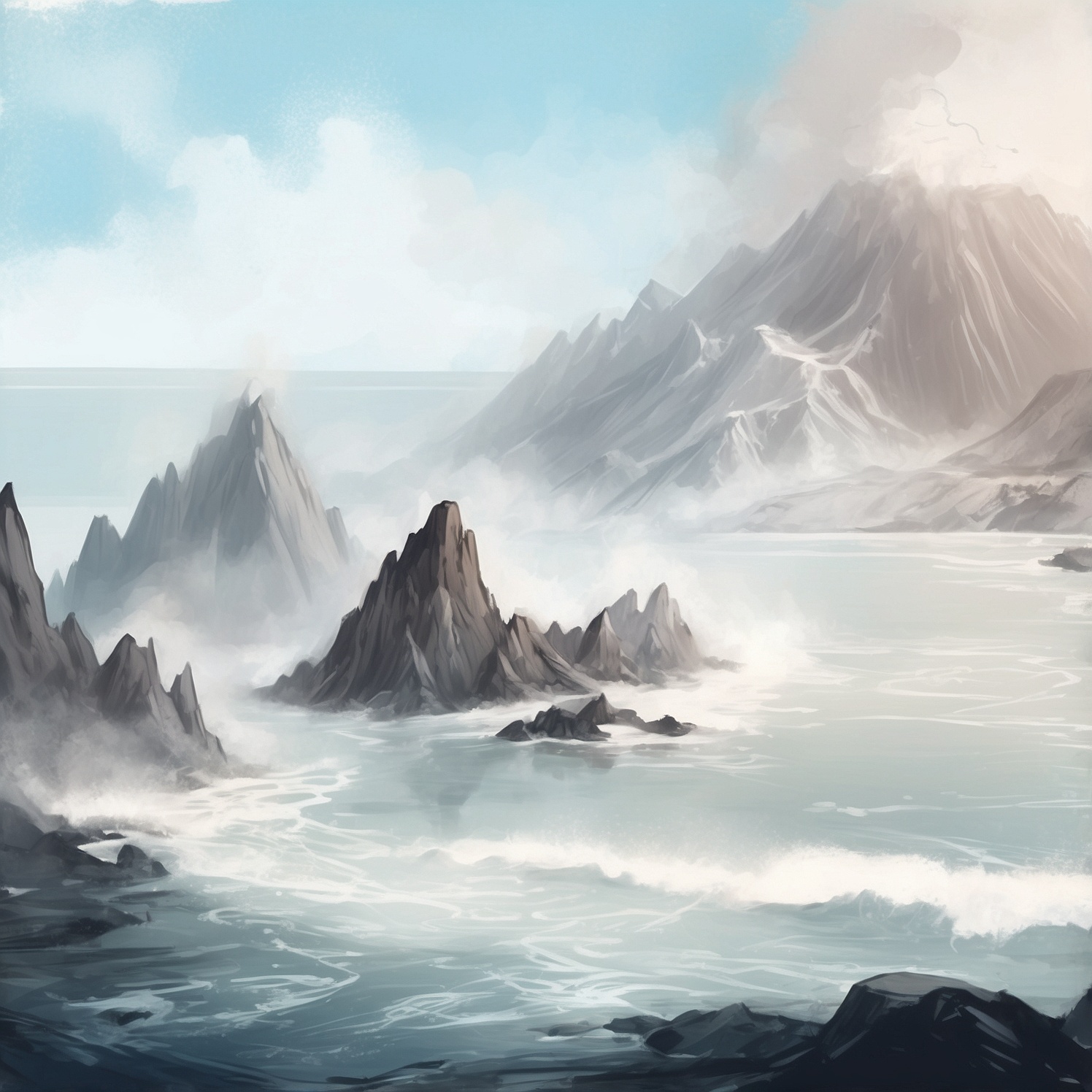 The Cradle of Wrath is a foreboding island located off the northern coast of Vikholm, within the icy reaches of the northern seas. Dominated by a dormant volcano, this island has a dark and ominous reputation, steeped in history and legend. Its rugged cliffs and jagged rocks, which rise sharply from the sea bed, make it a hazardous place to approach, even for the most seasoned sailors. The island's volcano, although dormant for centuries, still looms large in the minds of the people of Vikholm, who regard it as a powerful and unpredictable force of nature.
