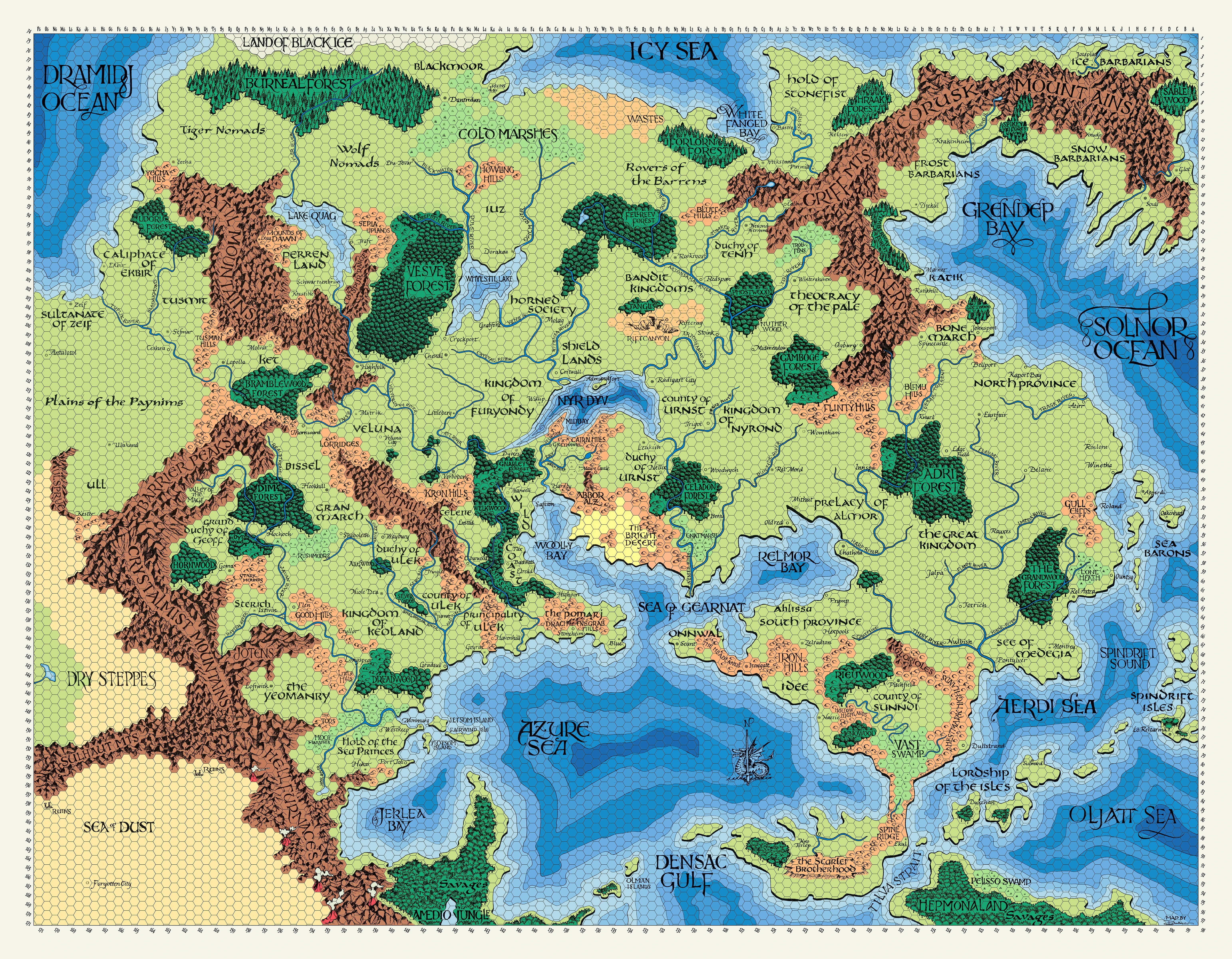 The Flanaess can be divided into nine broadly defined geopolitical territories, most of which coincide with old national identities that once dominated those regions. The exception here is the southern region of isolated lands, some of which are not part of the Flanaess proper (for example, Hepmonaland).