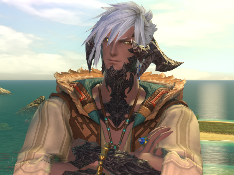Becoming an employee of the Verdant Wind Mercantile Company has been the most rooted he’s ever been since coming to Eorzea, and he’s now learning some of the intricacies of politely socializing. There are many concepts that go right over his head, and it’s been his endeavor to fix that. His past coworkers have generally described him as laidback, friendly, and outgoing, with a strong work ethic to round it out. He’d describe himself much more harshly: ignorant (to Eorzean customs), naive, lonely, and homesick.