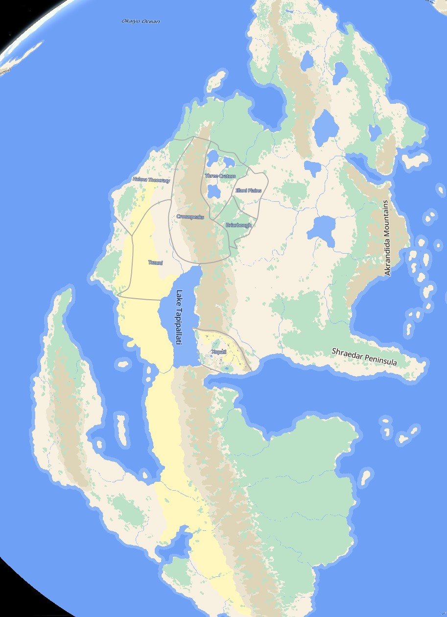 Arcadia is the continent to the West of the original location of the World Weep. It contains the regions of the Deadshot Lands, The Grinding Coast, the Land of Northern Lakes, the Land of Second Souls, Old Razatian, the Primal League, and the Salt Stretch.